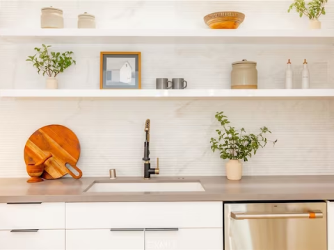 This modern minimalist kitchen is a testament to the power of clean lines and open space. Uncluttered countertops and streamlined cabinetry create a sense of calm and serenity, perfect for whipping up a meal or enjoying a cup of coffee in the morning.